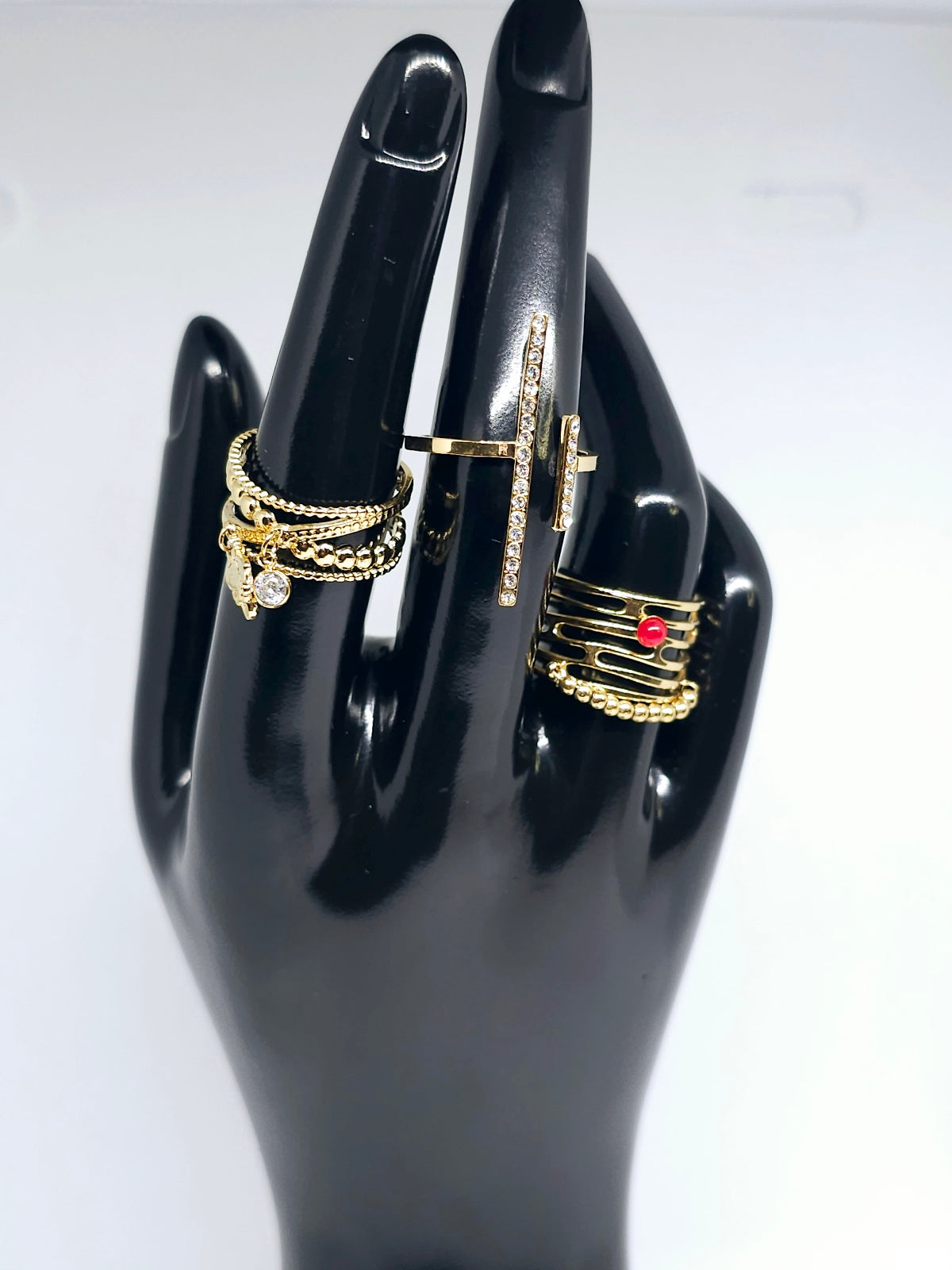 Bague dorée charms multiples élégante Anneau doré décoré de pendentifs